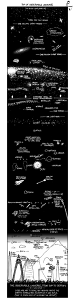 Title Text:Interestingly, on a true vertical log plot, I think the Eiffel Tower’s sides would really be straight lines. Origin:https://xkcd.com/482/ https://www.explainxkcd.com/wiki/index.php/482:_Height 我们的世界:高度 有趣的是,如果把埃菲尔铁塔画在一个对数标尺的图上的话,它的边大概会是笔直的…… https://songshuhui.net/archives/70054 高度使用对数刻度来描绘宇宙的内容,距离地球的距离逐渐减小(地球以上不太高),从可观察的宇宙边缘的最高可能“点”开始,一直向下到达草地在我们脚下。漫画是48… Read more