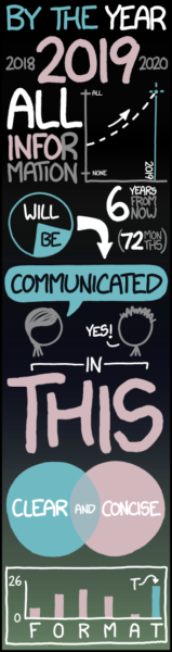 这个漫画是一个讽刺的信息图,通常用于简化和帮助可视化信息,否则将是非常无聊的信息。兰德尔通过制作一个无用的数据库,完成不必要的数据以及讽刺和公然滥用常见图形和图表,将这种“简化”发挥到极致。在这一点上,他甚至没有简化他的句子“到2019年,所有信息都将以这种简洁明了的形式传达。”他提出了一个讽刺性的主张,指出一些信息图表如何使他们应该浓缩的东西变得不必要地复杂化。