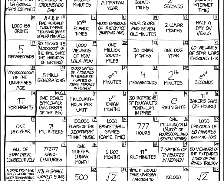 Title Text:If you don’t end the 99 Bottles of Beer recursion at N=0 it just becomes The Other Song That Never Ends. Origin:https://xkcd.com/2636/ https://www.explainxkcd.com/wiki/index.php/2636:_What_If%3F_2_Countdown What If? 2 倒计时 如果你不在N=0时结束99 Bottles of Beer的递归,它就会变成”另一首永不结束的歌”。 http://xkcd.in/comic?lg=cn&id=2636 这部漫画将降临日历的想法发挥到了极致。它使用荒谬和晦涩的方式来衡量距离兰德尔的新书还有多少时间如果?2发布,… Read more